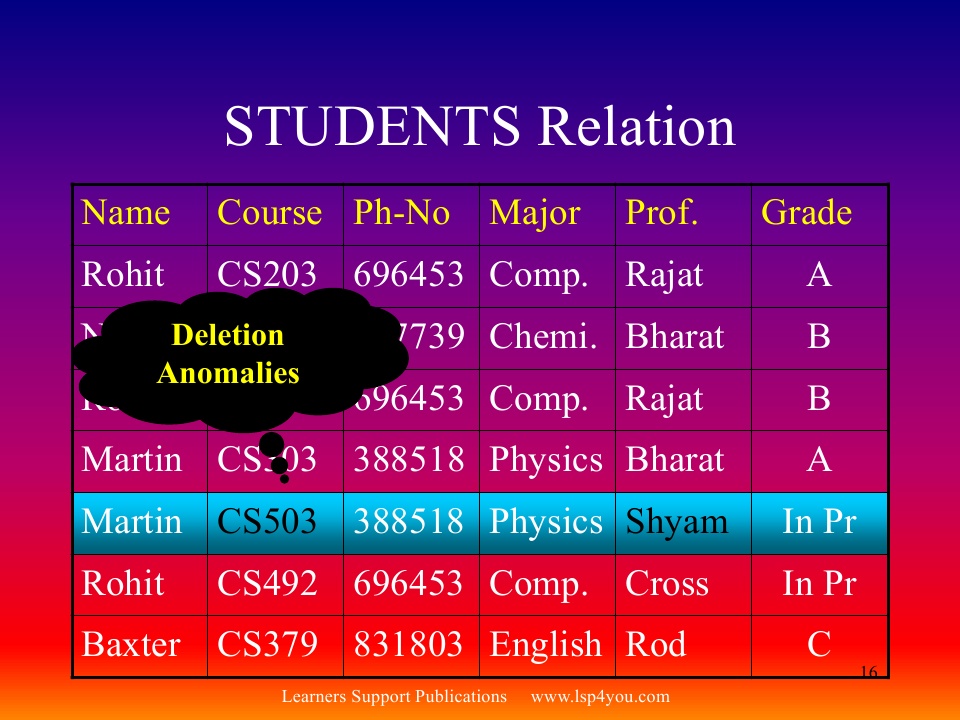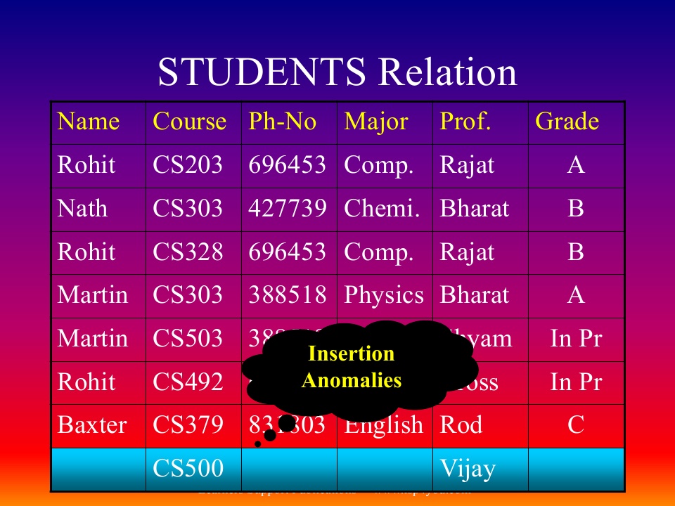 Update, Insert, Delete Anomalies